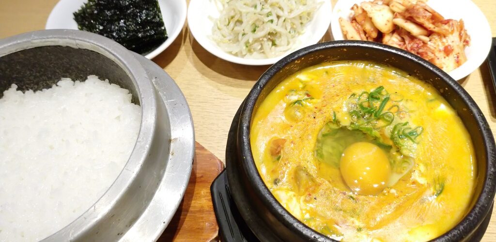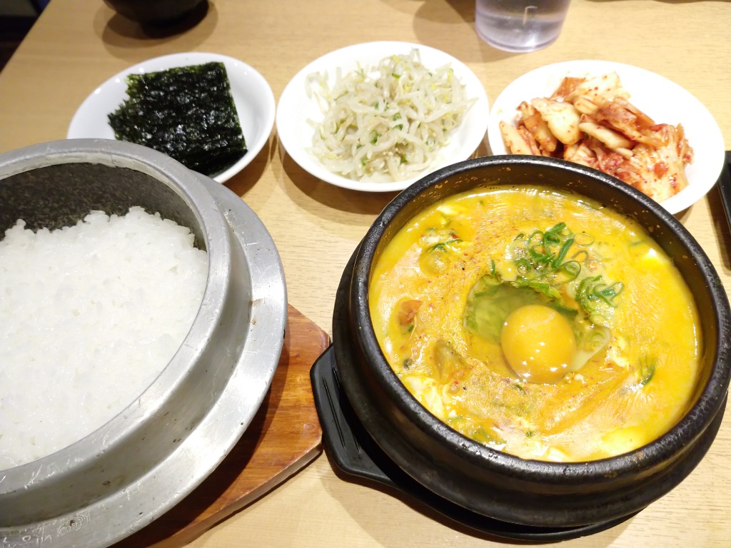 キムチ、ナムル、韓国海苔の副菜が付いてきます。