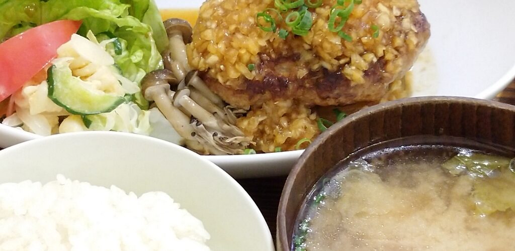 玉ねぎたっぷりの醤油味のソースがかかっていておいしかったです。