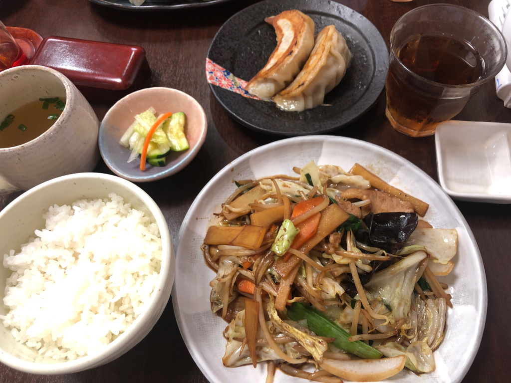 Mさんが食べていた野菜炒め定食。餃子2コ付き。野菜炒めはどんな味だったのかな?