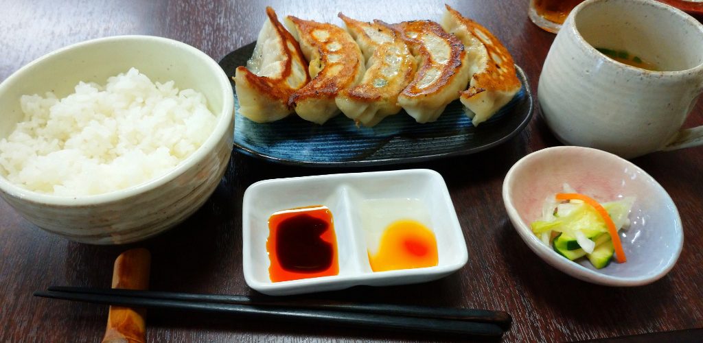 ランチでは、にんにく抜きの餃子が出ます。希望すればにんにくありの餃子も注文できます。