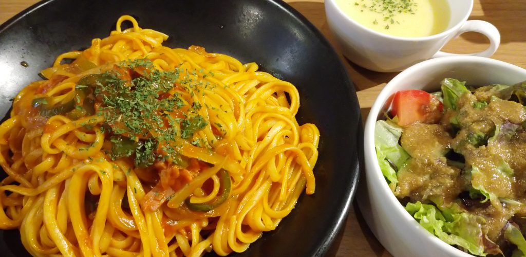 Kさん、Mさんと3人でパスタを食べました。