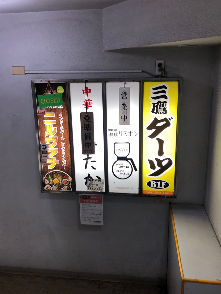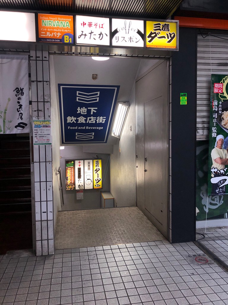 地下飲食店街に店が4件。三鷹ダーツか。あやしさがつのります。