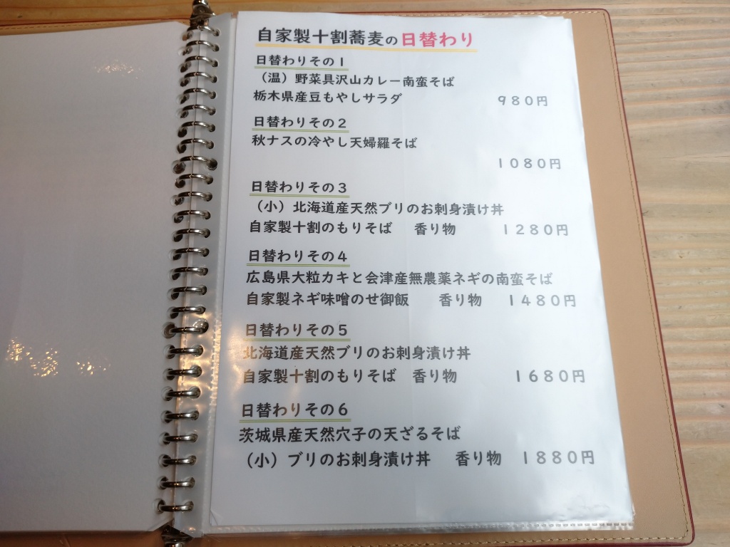 そばとのセットメニューが、日替わりでいろいろあります。