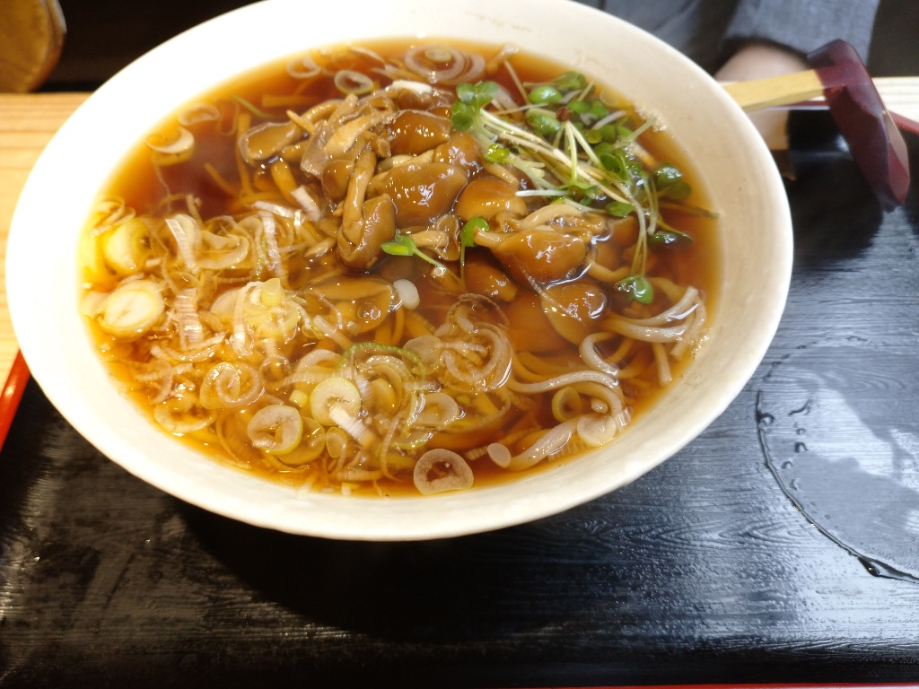 ナメコの温かいそばです。