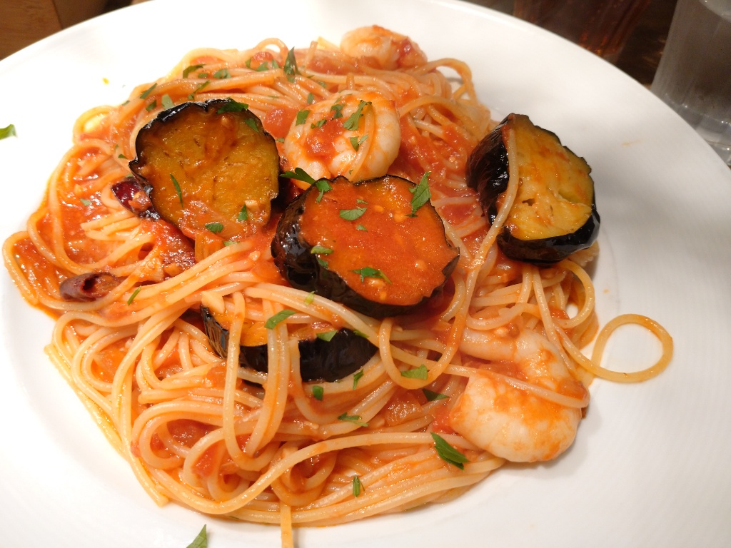 メニューの写真を撮り忘れましたが、トマトと茄子のアラビアータを食べました。大盛りです。