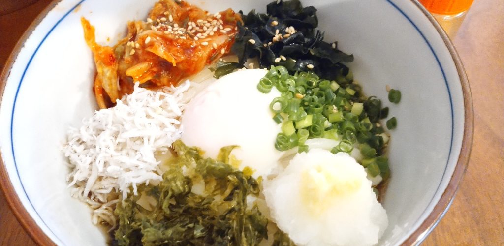 私が食べたのは、温たまキムチのシラスぶっかけです。