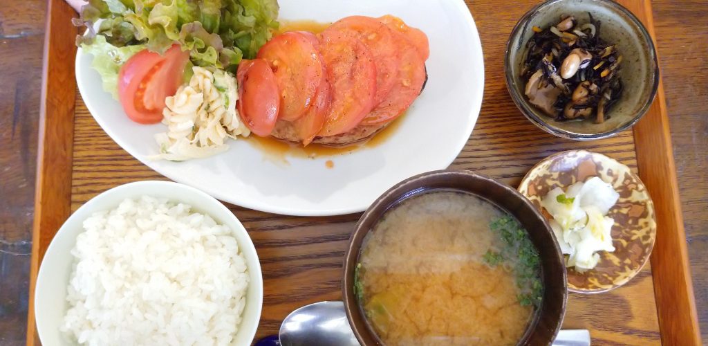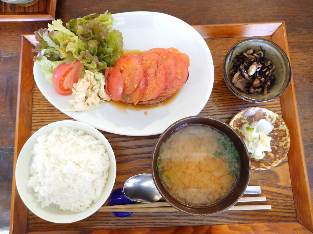 夏の季節限定のフレッシュトマトのハンバーグ定食 (1250円) を食べました。